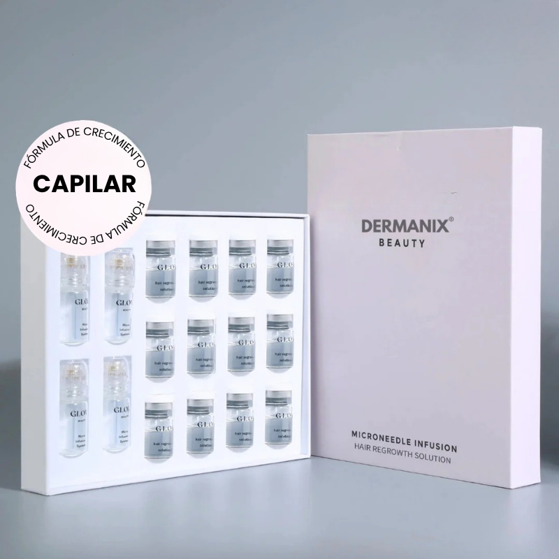 El sistema de microinfusión Dermanix está formulado para estimular el crecimiento capilar sin importar el tipo de alopecia, incluida la alopecia androgenética (caída hereditaria progresiva) y la alopecia areata (pelada).
