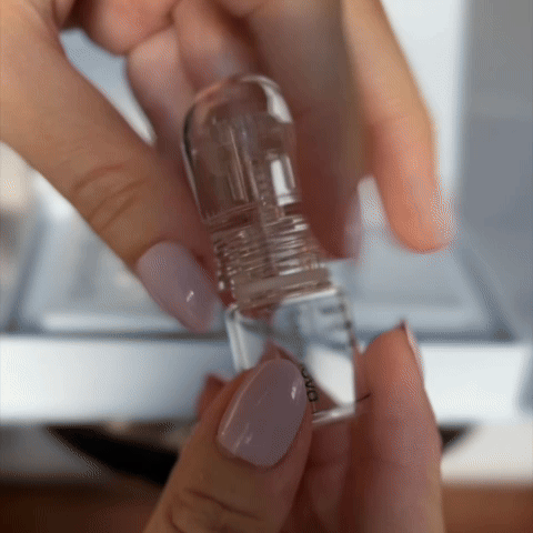 Lávate el cabello. Llena el dispositivo con el suero del frasco de vidrio y fija la cabeza con las microagujas estériles. Aplica suavemente el dispositivo en las zonas problemáticas, desde la línea frontal del cabello hasta la coronilla.
